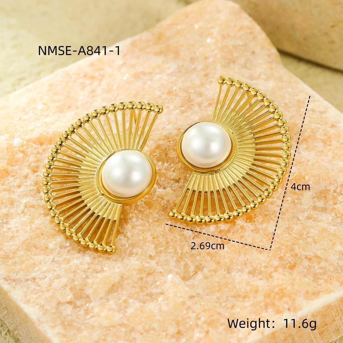 The Retro Minority Titanium Steel Fan-shaped Striped Pearl Stainless Steel Studs Women's Fashion Ornament by Etsy are a chic addition to any outfit. These earrings feature a unique fan-shaped design with striped pearl detailing, giving them a retro feel. The titanium steel material ensures durability, while the 18K purity adds a touch of luxury. The stainless steel studs make them comfortable to wear all day long. The Color (NMSE A841 1) adds a pop of color to any look. Perfect for those who love retro fashion earrings, these studs are a must-have accessory for any fashion-forward individual.