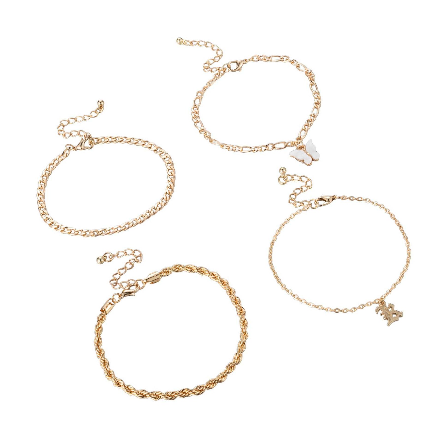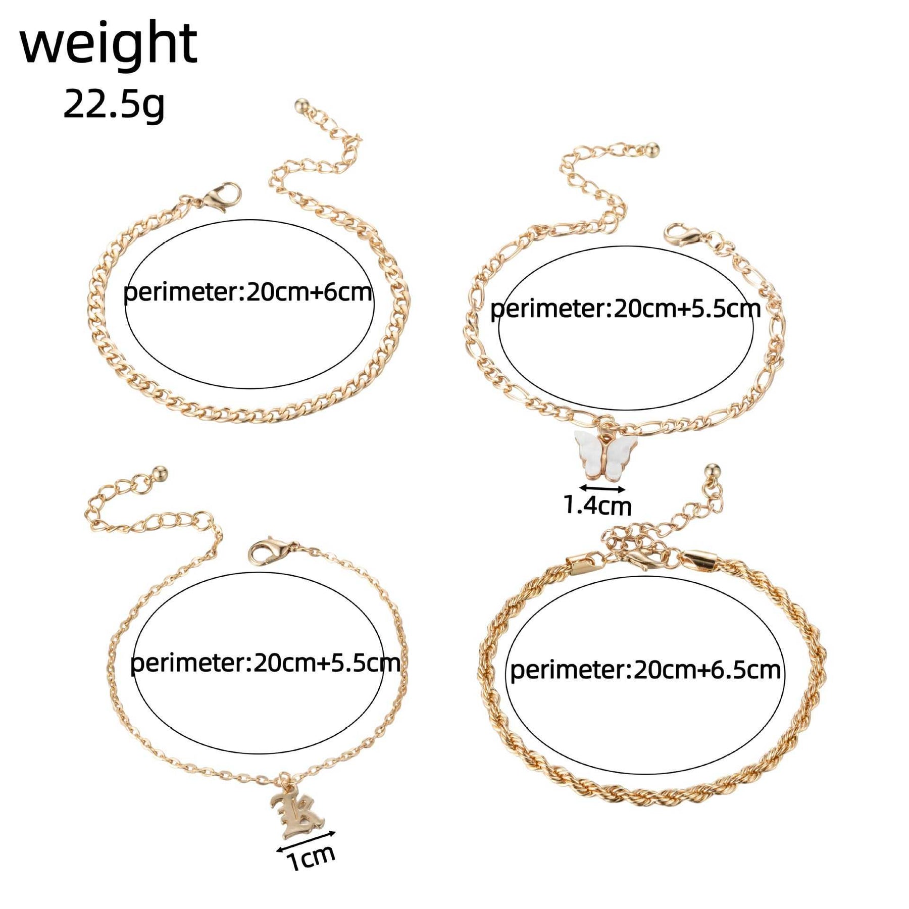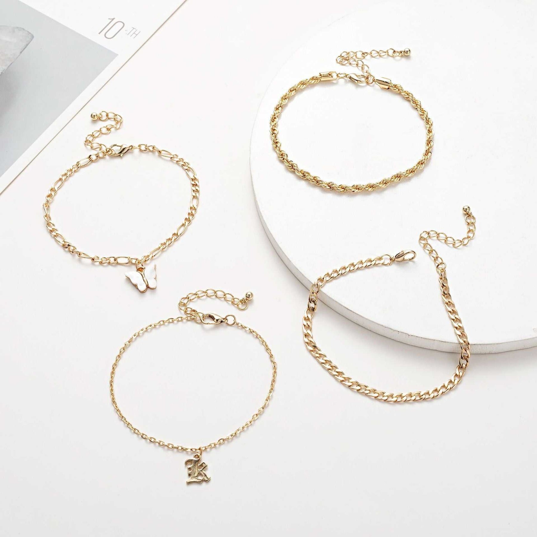 Add a touch of elegance to your look with the Personalized Golden Butterfly Adjustable 4-piece Anklet by Etsy. This exquisite anklet features a beautiful golden butterfly charm that can be customized with your initials. Made with high-quality materials, this anklet is adjustable to ensure a perfect fit. The unique selling point of this product is its personalized touch, making it a special accessory for any occasion. The Color (Sku5823) of the anklet is a stunning shade of gold that will complement any outfit. Elevate your style with the Customized Butterfly Anklet today.