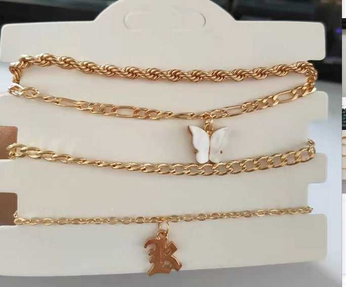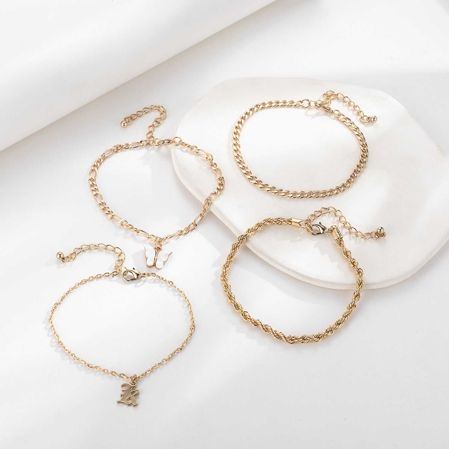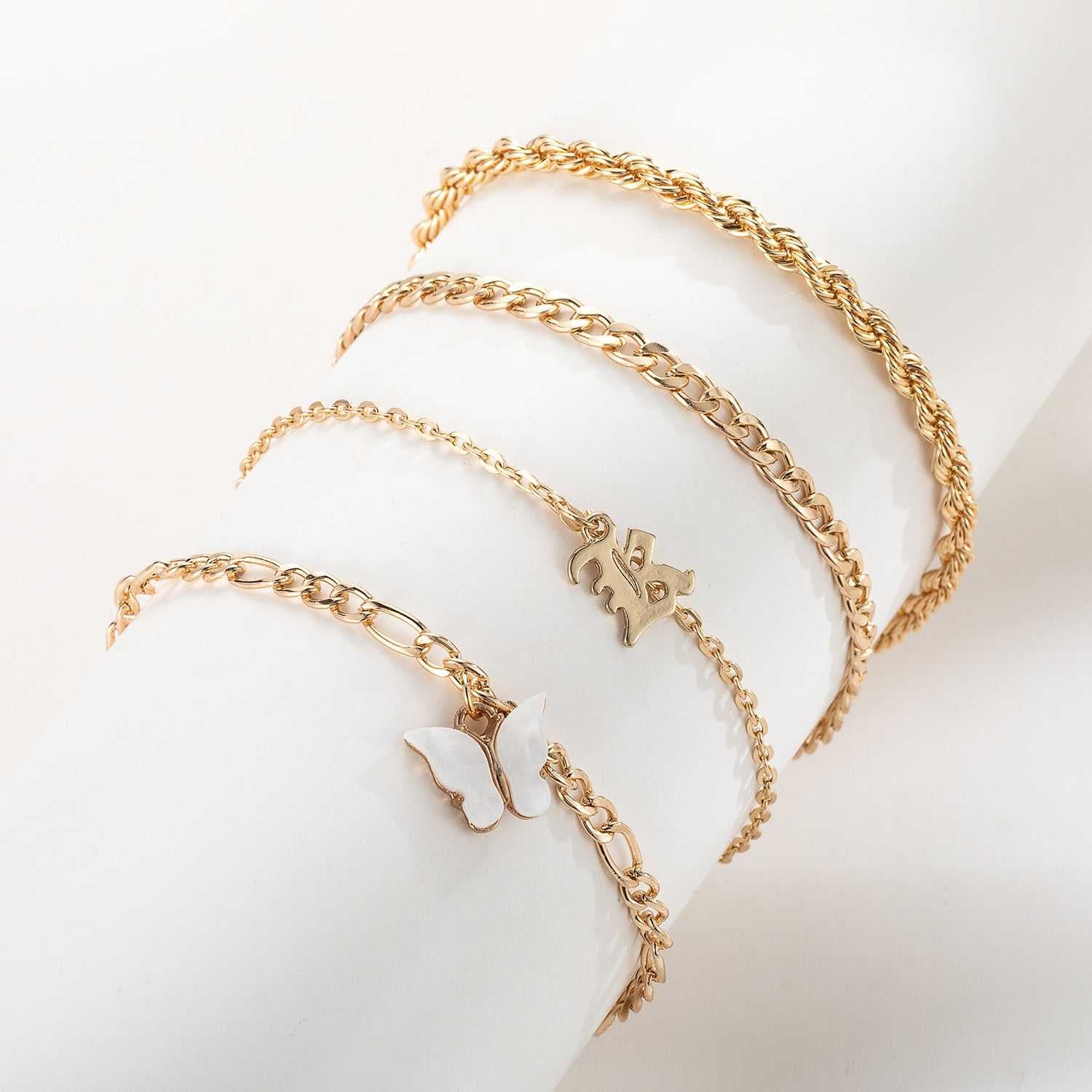 Add a touch of elegance to your look with the Personalized Golden Butterfly Adjustable 4-piece Anklet by Etsy. This exquisite anklet features a beautiful golden butterfly charm that can be customized with your initials. Made with high-quality materials, this anklet is adjustable to ensure a perfect fit. The unique selling point of this product is its personalized touch, making it a special accessory for any occasion. The Color (Sku5823) of the anklet is a stunning shade of gold that will complement any outfit. Elevate your style with the Customized Butterfly Anklet today.