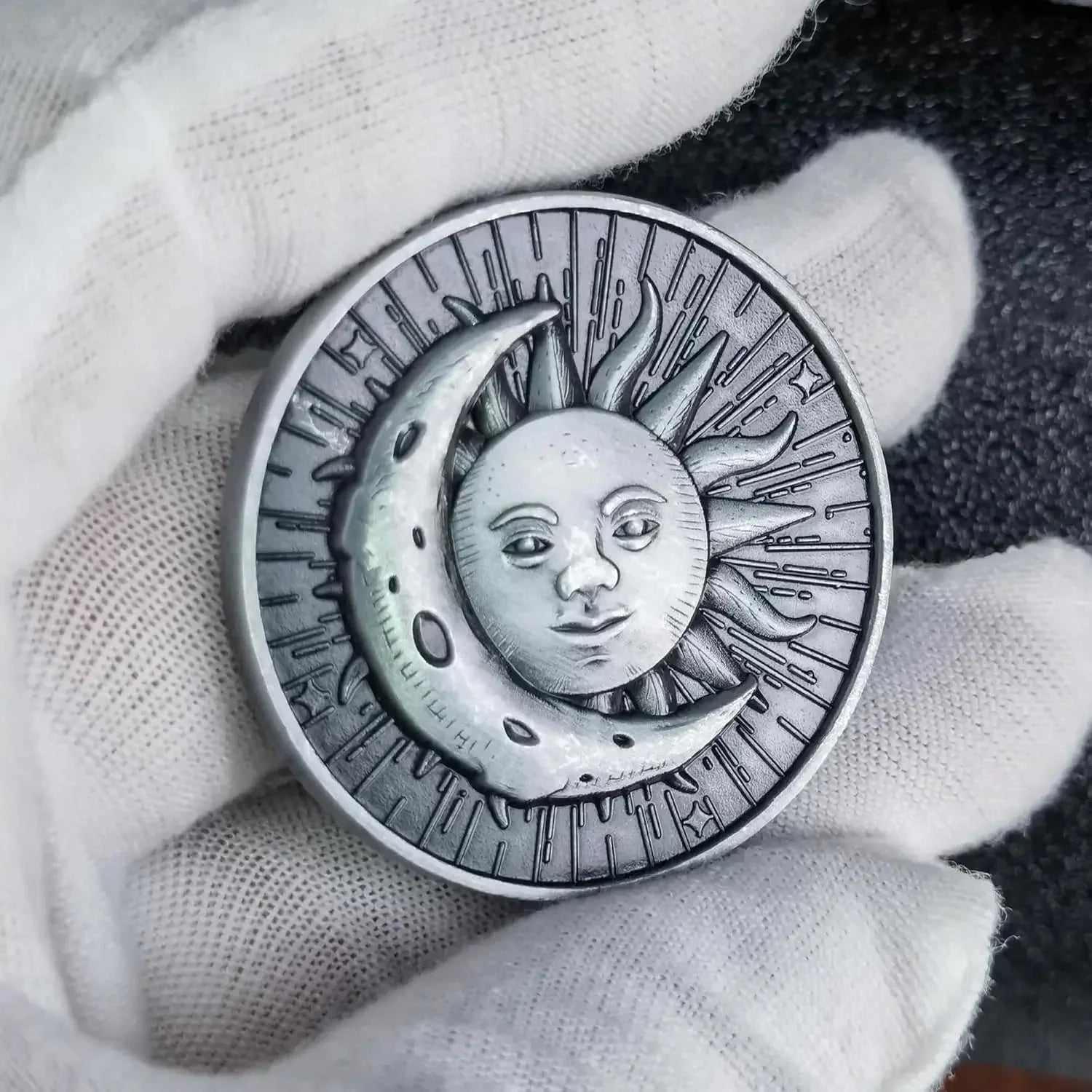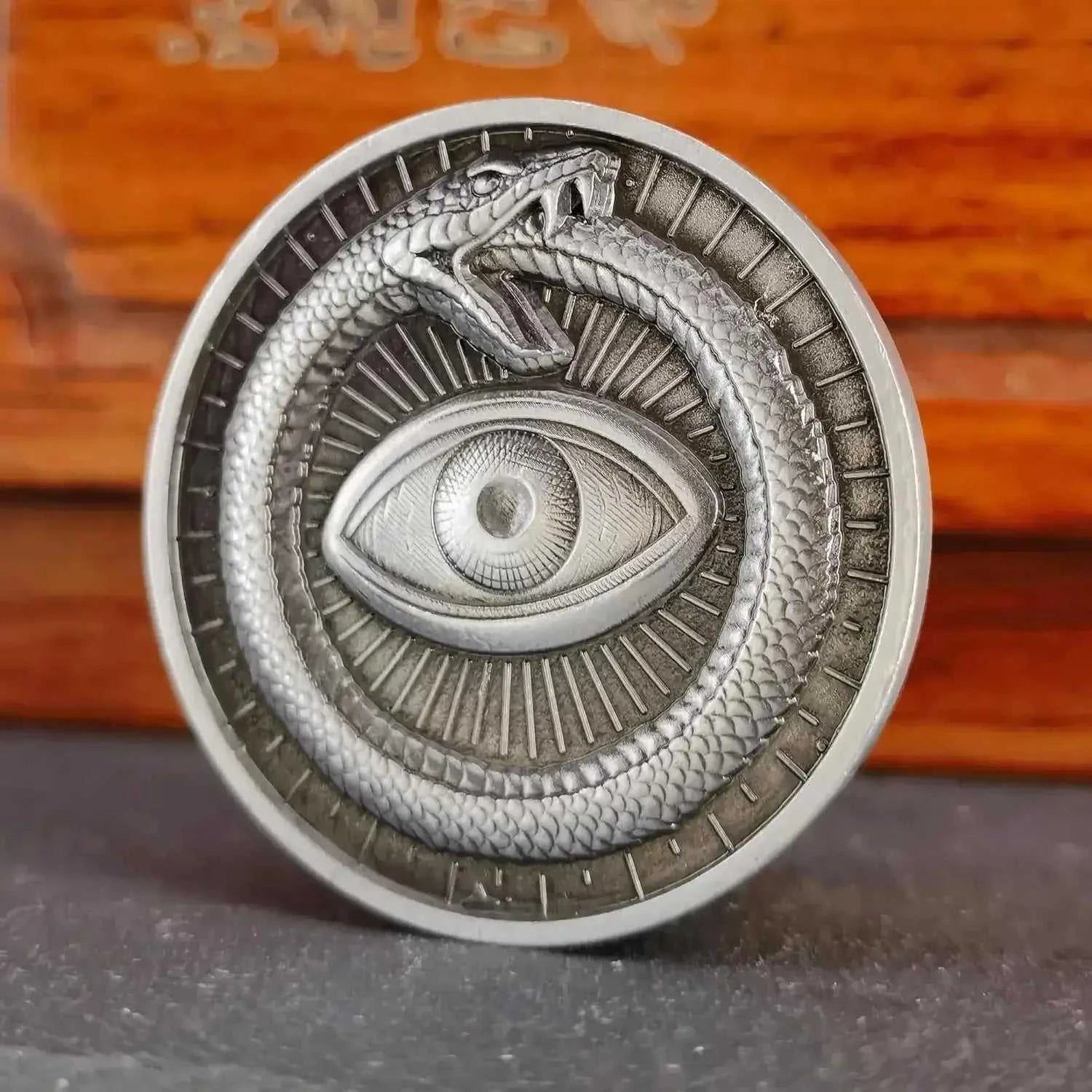 Sun Moon Ouroboros All-Seeing Eye Lucky Coin with 3D Relief Design Unique Challenge Coin